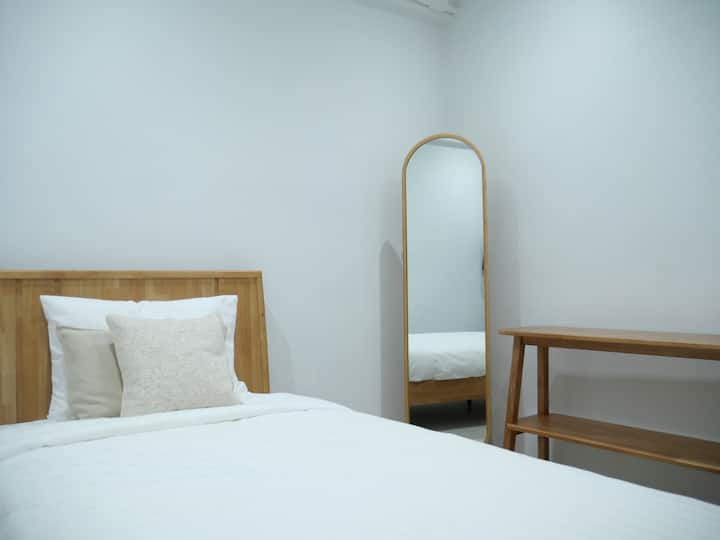 Habitación de Bernard cómoda, baño compartido