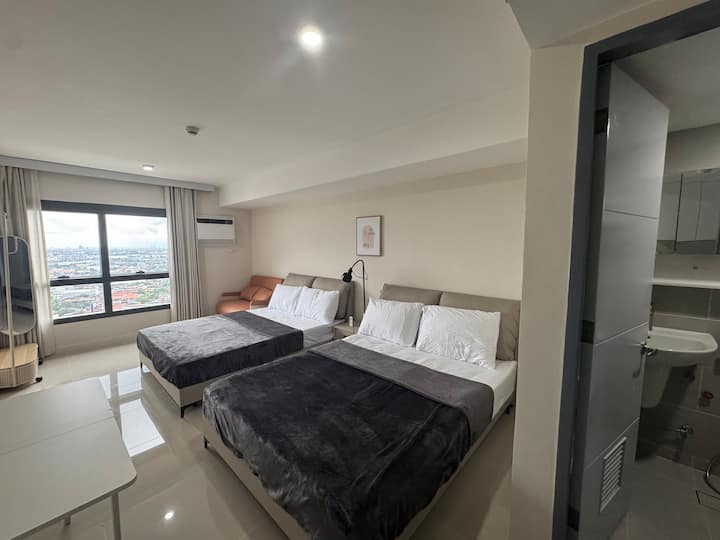 Estudio familiar urbano en J Tower con acceso a la piscina y al centro comercial