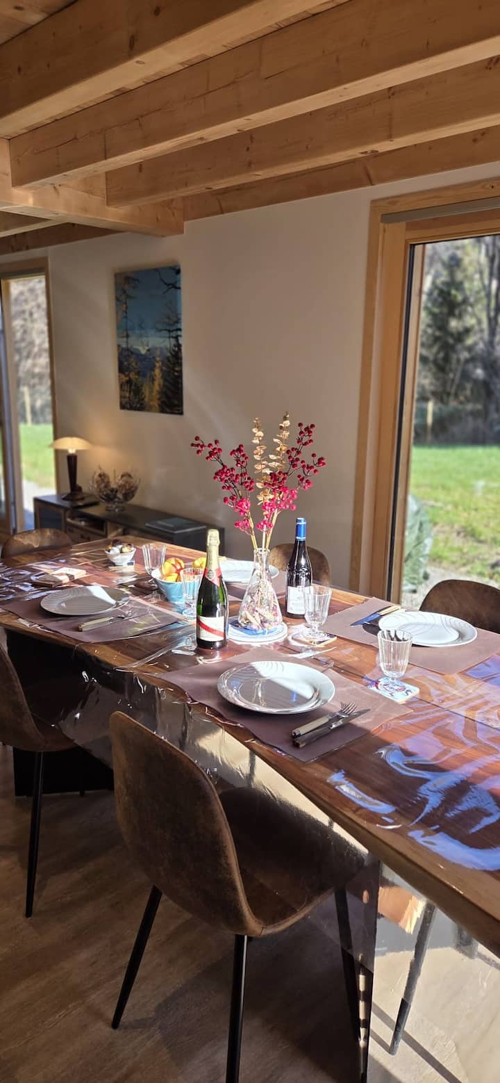 Nueva casa de campo acogedora y cálida situada en una nueva y tranquila urbanización a 5 minutos de Saint-Gervais y de los remontes mecánicos🚡.