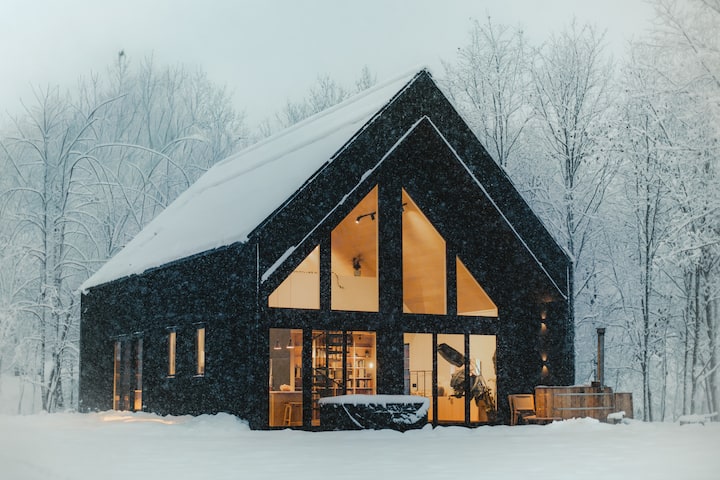 En invierno, el lago se convierte en parte de la experiencia. Trae raquetas de nieve, esquís de fondo o patines de hielo. Es un lugar ideal para patinar, esquiar y explorar el lago congelado durante el día, y luego regresar al jacuzzi para entrar en calor.