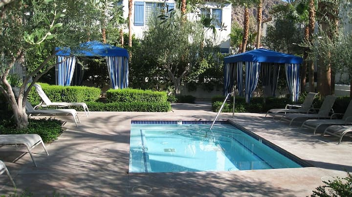 Las villas Legacy se encuentran en una comunidad cerrada, justo al lado del La Quinta Spa & Resort. Esta lujosa villa de dos dormitorios y dos baños se encuentra en el corazón de La Quinta, ofreciendo golf de clase mundial, restaurantes, tenis, ciclismo e instalaciones de spa. Nuestra villa de lujo ofrece una excelente ubicación a pocos pasos de la piscina principal, el restaurante y el área de entrenamiento. El apartamento está actualizado y cuenta con todas las comodidades de un hogar, incluida una parrilla de gas, 3 televisores de pantalla plana, wifi, cocina actualizada, ropa de cama y toallas de lujo. Esta villa es perfecta para una o dos parejas, una familia con hijos y escapadas divertidas con tus amigos. Hay dos suites principales, cada una con una cama tamaño king y un hermoso baño con bañera y ducha a ras de suelo separada. Puede ser una unidad «bloqueable», con entradas independientes si deseas total privacidad con un estudio y una unidad de un dormitorio. O puedes abrirla y es una unidad de 2 dormitorios. Hay un nuevo y cómodo sofá cama tamaño queen en la sala de estar y 2 sillones reclinables de cuero. Otras características incluyen un comedor completo, sala de estar con chimenea, lavadora-secadora y dos amplias terrazas que ofrecen vistas gloriosas. Se proporciona internet inalámbrico de cortesía para tu comodidad, así como cable y llamadas locales y de larga distancia gratuitas. Otros servicios incluyen 11 piscinas y spas de agua salada, 19 fuentes en cascada, seguridad privada las 24 horas, una casa club de 11 000 pies cuadrados con internet inalámbrico, parrilla heredada, delicioso bar junto a la piscina, café, desayuno y lugar para almorzar, gimnasio de última generación con pesas y equipos de cardio, piscina familiar estilo playa, tortugas rociadoras, palmera rociadora para los niños, fuente de juego burbujeante y área de juegos, piscina para adultos y 2 piscinas de entrenamiento, y múltiples spas, cabañas junto a la piscina, internet inalámbrico listo, zona de parrilla con unidades de gas de lujo listas para su uso, jardín de hamacas de palmeras datileras y césped de actividades, chimeneas al aire libre y salones de conversación y mucho más. Justo al lado de Legacy Villas, el La Quinta Spa Resort and Club ofrece 5 campos de golf de fama mundial en PGA WEST 'El hogar occidental del golf en Estados Unidos' y en La Quinta Resort & Club. Además, disfruta del Spa La Quinta, un spa y gimnasio de clase mundial. Experimenta uno de sus muchos tratamientos exclusivos que incluyen terapia de cuidado de la piel, tratamientos corporales, masajes e hidroterapia.