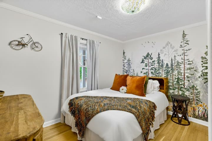 Ubicada entre los árboles y a solo 3 millas del centro de Portland, nuestra hermosa casa vintage de Portland te espera. El ENORME porche delantero cubierto con un área de comedor en el cenador es muy acogedor: siéntate y observa la lluvia caer a tu alrededor mientras te mantienes perfectamente seco. En el patio trasero, relájate en la nueva bañera de hidromasaje rodeada de naturaleza. Disfruta de un café por la mañana y escucha a las aves nativas por encima. Nuestro alojamiento es muy familiar y ¡aceptamos mascotas!