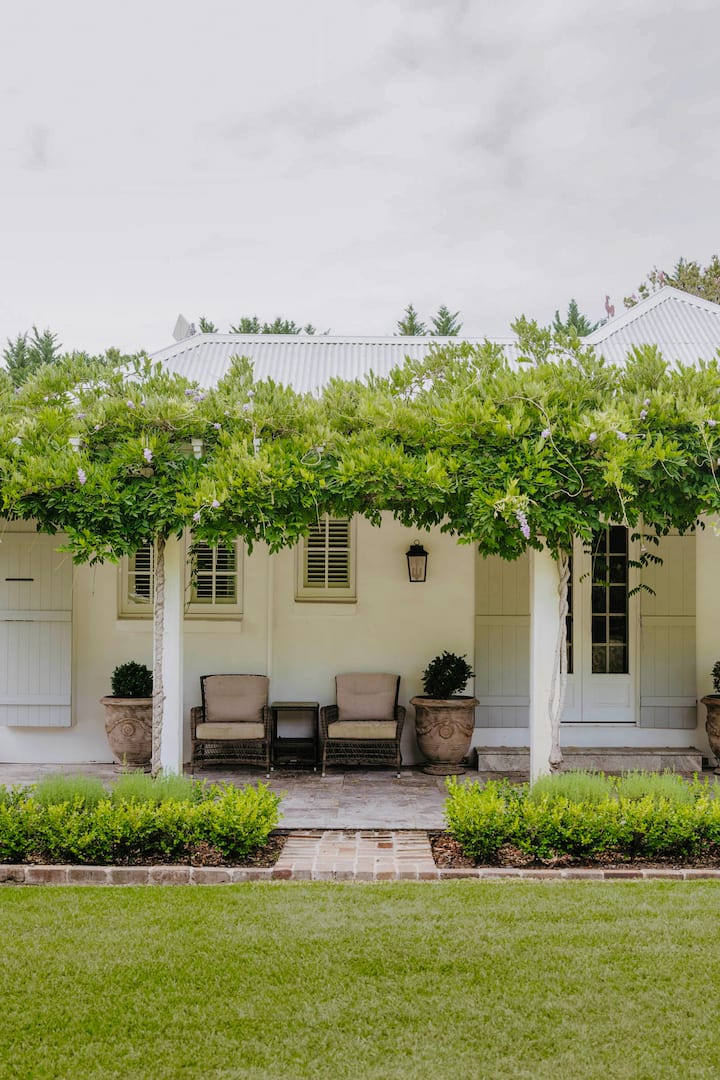 Rodeada de jardines cuidados, árboles maduros y potreros abiertos, la propiedad se siente maravillosamente aislada mientras permanece cerca de algunas de las mejores atracciones gastronómicas y costeras de la costa sur. Los huéspedes pueden pasear por los jardines, disfrutar del huerto y del huerto orgánico cerrado, o relajarse bajo la pérgola cubierta de glicinas, particularmente impresionante en primavera.