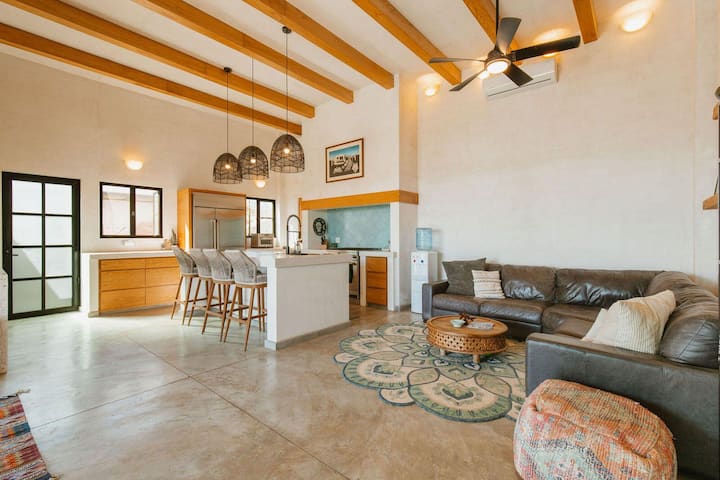 Escápate al paraíso en este impresionante refugio en la ladera con vistas panorámicas al Pacífico, a pocos minutos de la tranquila ciudad surfista de Cerritos. Diseñado para la relajación, la conexión y los recuerdos inolvidables, este espacioso alojamiento de 4 dormitorios combina comodidad, privacidad y encanto de Baja en un entorno costero perfecto.