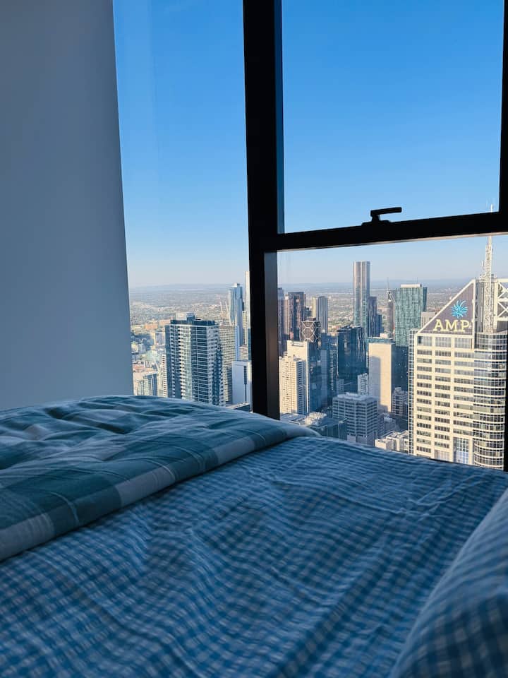 Disfruta de impresionantes vistas al horizonte de la ciudad y al río Yarra desde el dormitorio, muy por encima de la ciudad en el piso 74. Perfectamente ubicado justo enfrente del estadio Marvel y la estación Southern Cross (terminal SkyBus).
