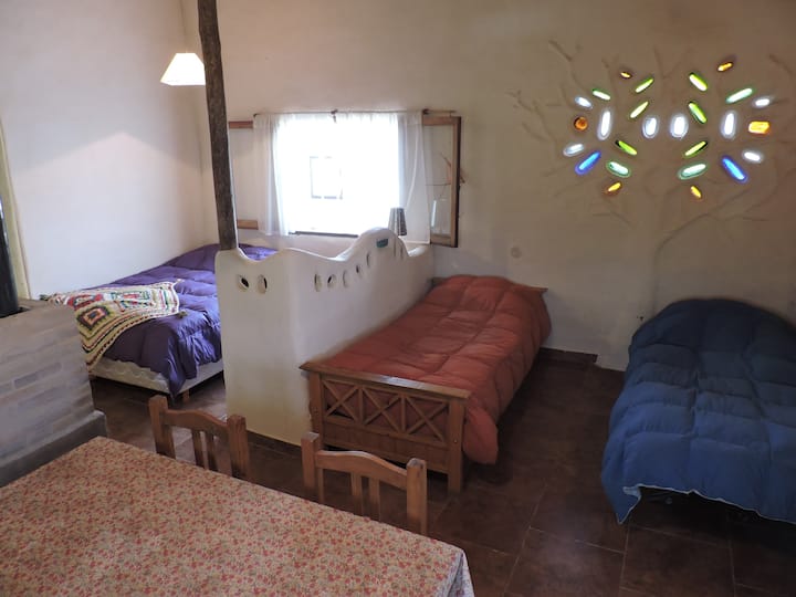 1 cama doble, 2 camas individuales, 1 hamaca