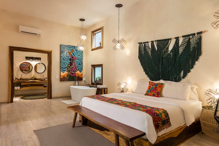 Desconéctate del ajetreado mundo mientras experimentas la estancia en la selva con las comodidades y lujos que nuestras 6 modernas villas mayas ofrecen para hacer que tu viaje sea inolvidable.