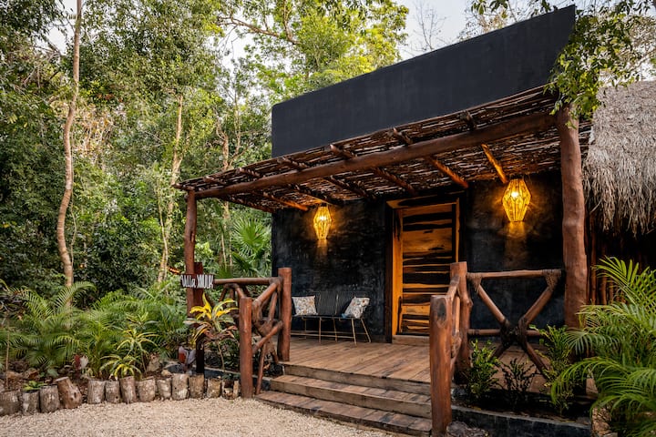 ****Esta propiedad está ubicada en 2 hectáreas de terreno, hay un total de 6 villas que comparten áreas comunes como el cenote, la piscina, la palapa, etc. Las áreas comunes son exclusivamente para el uso de nuestros huéspedes. No se permite la entrada de otras personas a nuestra propiedad.