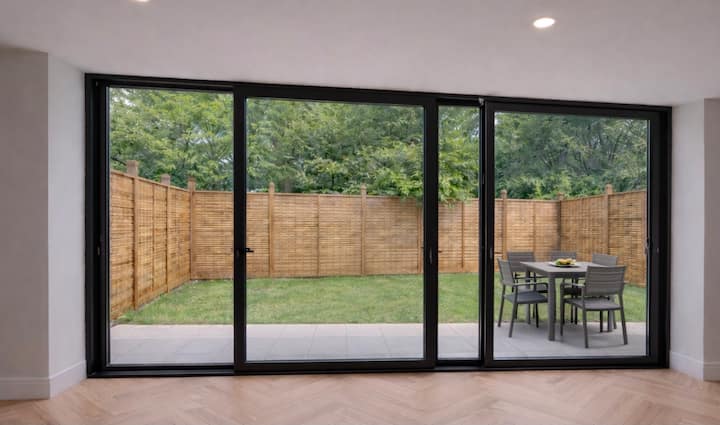 Las grandes puertas corredizas se abren a un jardín privado, seguro y cerrado con asientos al aire libre, una característica poco común en los departamentos de Londres e ideal para tomar el café por la mañana, disfrutar del aire fresco o relajarse por la noche.