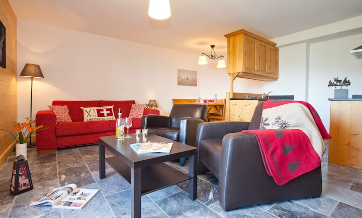 Súper apartamento junto a pistas de esquí para 4 personas en el centro de La Tzoumaz