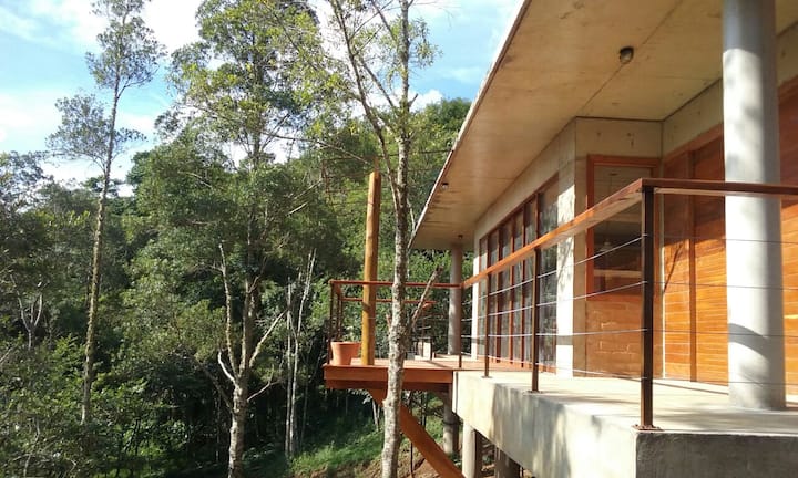 La entrada a esta propiedad está más abajo, segunda entrada a la derecha después de la entrada donde hay un letrero donde está escrito EL ARQUITECTO CLAUDIO, Casa da Colina Sagrada.