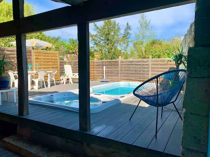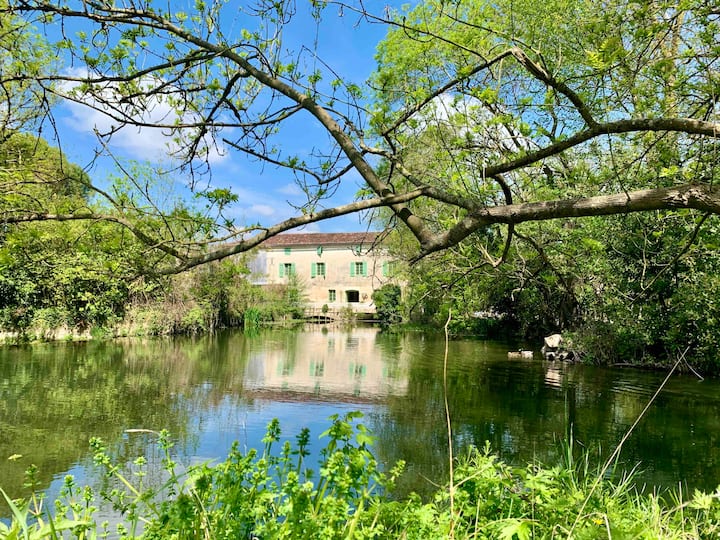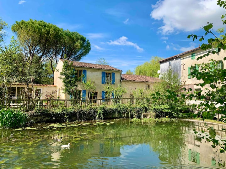 Michael y Louise Power te dan la bienvenida a su molino de agua y gîtes renovados del siglo XIV. Ofrecemos 2 casas de campo de piedra Charentaise cada una con capacidad para 6 personas y un bungalow millers con capacidad para 7 personas. Todo con terrazas y jardines privados, y una piscina de hidromasaje y jacuzzi de lujo. Ubicado en un paisaje idílico de 7 pequeñas islas a lo largo de la orilla del río Seugne. A solo 5 minutos a pie del centro de la ciudad comercial medieval de Pons en la hermosa Charente Maritime.