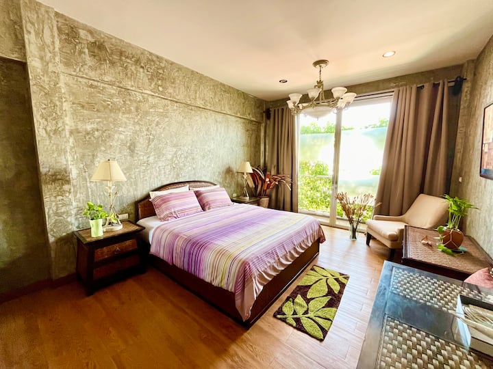 Me gusta viajar y utilizar la mayoría de mis viajes y diseñar experiencias como mi inspiración para esta casa. Me entusiasmé con los principios del diseño de interiores y la construcción después de dejar mi trabajo, renové la casa adosada de mi familia en Sukhumvit 95 y transformé la casa en un lugar único y elegante en medio del tranquilo y tradicional entorno del pueblo. Cada una de las siete habitaciones tiene una historia única y está decorada con muebles y piezas de arte que he recopilado a lo largo de mis años de viajes.
