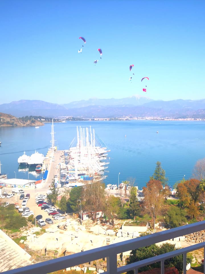 Mar completo panorámico único y vistas a la ciudad de Fethiye.
