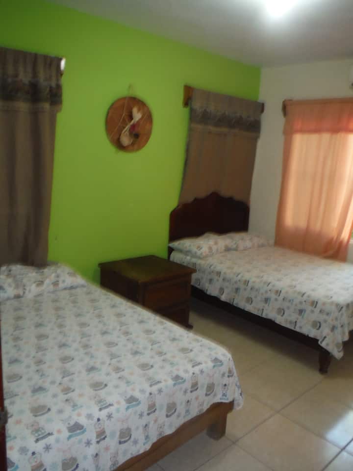 1 cama queen, 1 cama doble, 1 cama individual