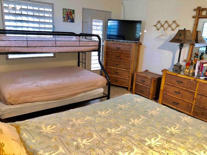 1 cama queen, 1 cama doble, 1 cama individual