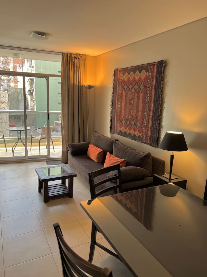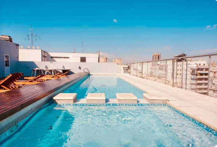 Moderno apartamento de 1 dormitorio con balcón y piscina.