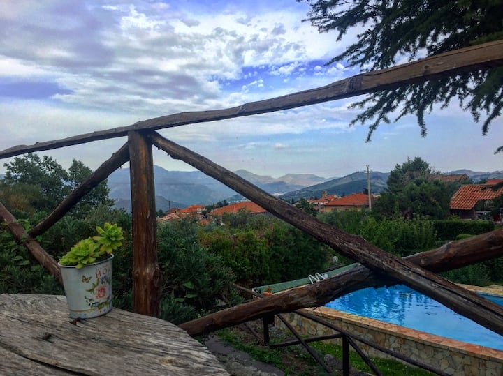 Con vista a la montaña y al jardín