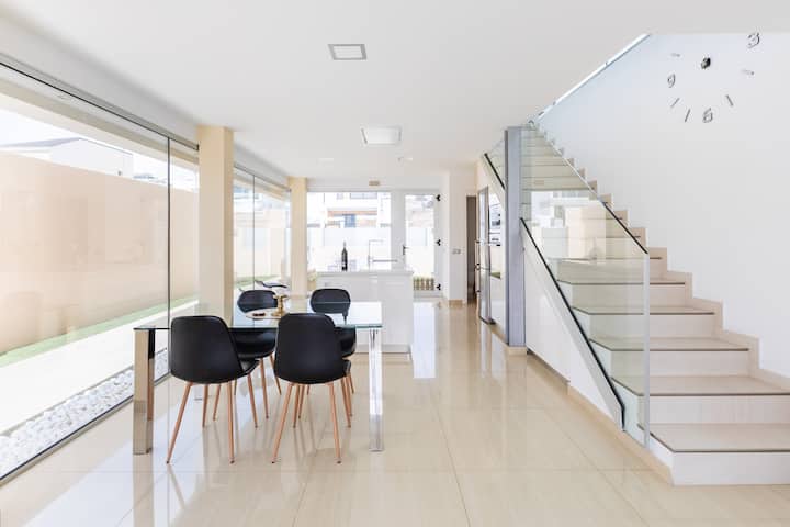 Tiene a su disposición un chalet totalmente nuevo y perfectamente ubicado, cerca de la playa, de centros comerciales y del aeropuerto; donde pasar momentos de relajación en pareja o en familia. Serán atendidos como se merecen, con la ilusión de que estén lo más cómodos posible.