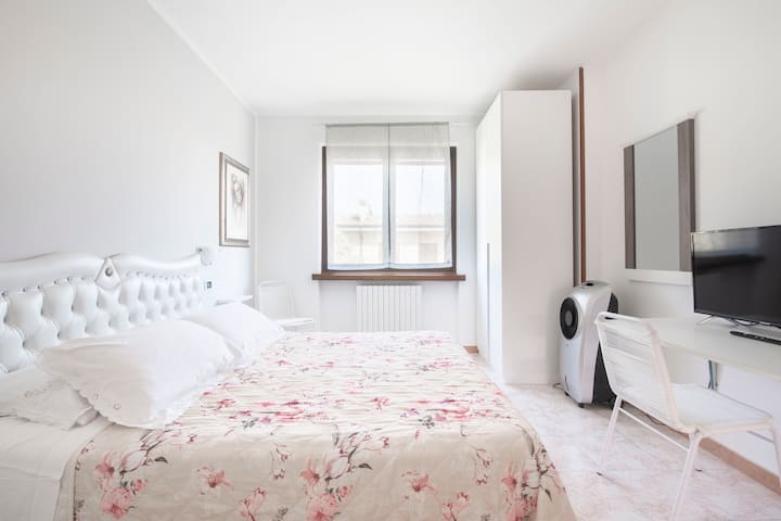 habitación blanca con jardín cerca del aeropuerto