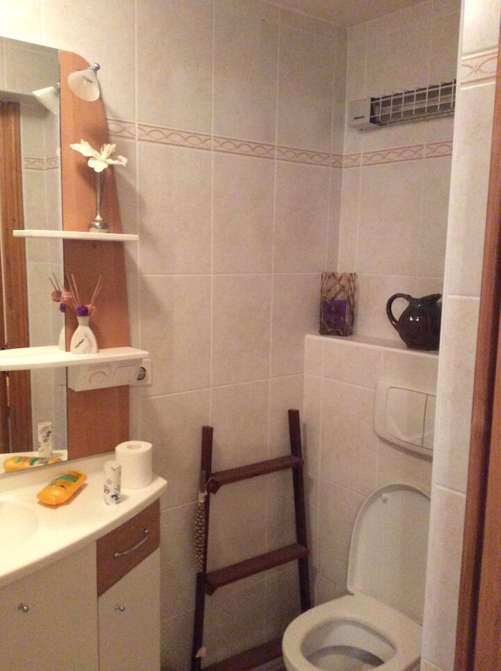 Habitación con baño independiente cerca del centro