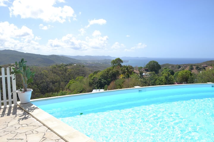 Estudio Frangipanier con piscina y hermosas vistas al mar