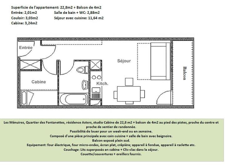 Les Ménuires, estudio/cabaña para 4 personas