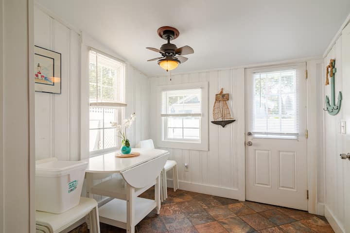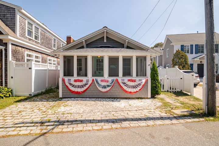 Escápate a Whale's Tale Cottage, una casa de campo renovada de 3 dormitorios y 1 baño con capacidad para seis (6) personas, ubicada a solo unos pasos del hermoso Nantucket Sound y del centro por excelencia de Harwich Port. Siente la brisa del mar desde el porche de esta encantadora casa de campo. Ubicada en la histórica zona de «Campground», pasea con tu familia y amigos mientras disfrutas de la arquitectura victoriana junto al mar con hortensias azules y rosas de Cabo Cod como telón de fondo.