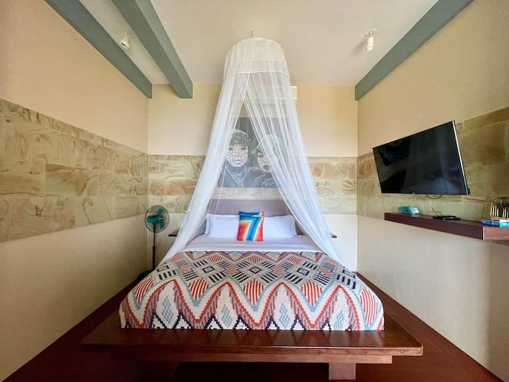 Nuestro centro vacacional está ubicado en una pintoresca colina con vistas a la bahía de Corong Corong en el continente El Nido. Si bien no estamos directamente frente a la playa, estamos a solo 5 minutos a pie de la playa de Corong Corong y a menos de 10 minutos en triciclo del centro de la ciudad de El Nido.