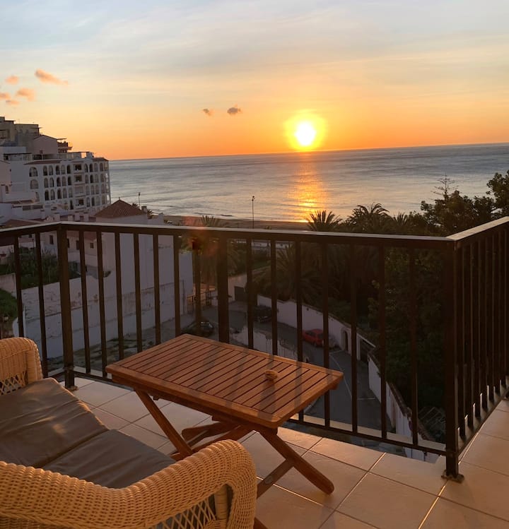 Bonito apartamento de un dormitorio, con vistas al mar en la planta superior.