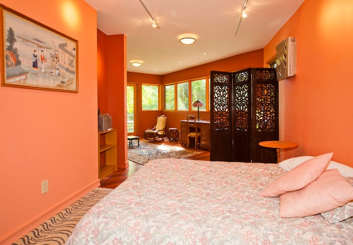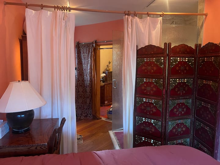 Habitación rosa/sala de estar/escritorio/terraza privada