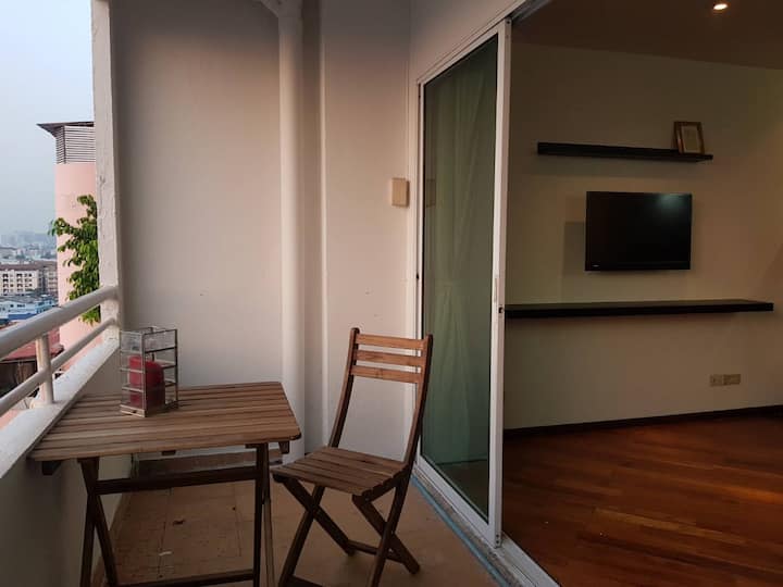 Habitación en alquiler cerca de mrt (estación de cultura tailandesa), piscina totalmente amueblada, TV. Aire acondicionado.