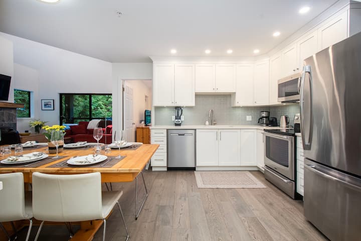 ¡Whistler no puede ser mejor que un apartamento de esquí totalmente renovado justo encima del hotel Fairmont Chateau Whistler (a 1 minuto a pie de la entrada de esquí y a 4 minutos a pie de la salida de esquí)! Cerca de las pistas y del pueblo, pero muy tranquilo y privado. Unidad de lujo en esquina de dos niveles con techos abovedados, excelentes reseñas y sin vecinos arriba. Ideal para familias o grupos que requieran hasta 5 camas, o para parejas o amigos que requieran camas tamaño queen y king. Muy por encima del típico apartamento de alquiler de Whistler.