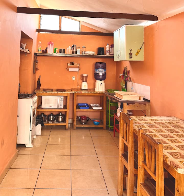 Habitación con baño y cocina privada, Garaje