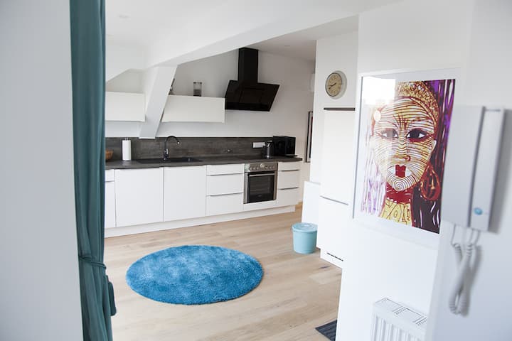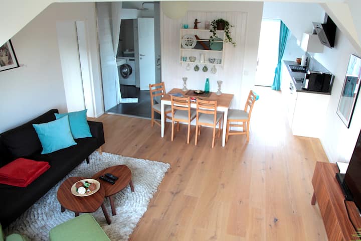 Luminoso apartamento con terraza en la azotea cerca de Main St.