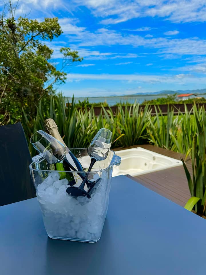 Hoy, después de casi 3 décadas, estamos felices de dar la bienvenida a la gente aquí en la Casa de Huéspedes Dodo, en nuestras casas de huéspedes recién construidas, todas frente a la laguna de Ibiraquera, aquí está la laguna desde arriba. Las casas se hicieron una por una con una decoración diferenciada, pero todas construidas pensando en la comodidad y el bienestar de nuestros huéspedes.