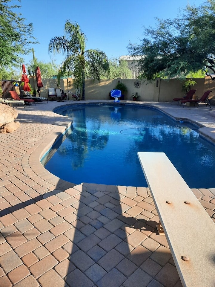 Piscina privada tranquila y patio en Cave Creek, norte de Scottsdale