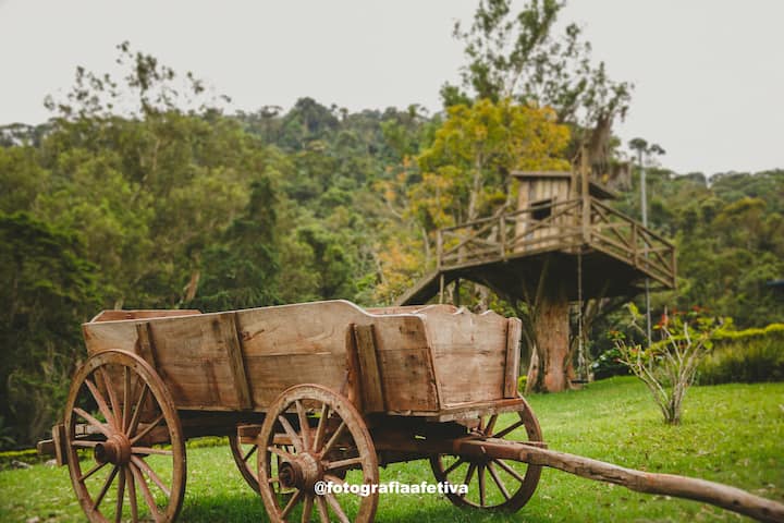 El clima estacional más encantador del año (la temperatura suele estar por debajo de 5 °C a 10 °C, en comparación con Río de Janeiro). Teresópolis da la bienvenida a sus visitantes con el famoso Festival de Invierno (junio - agosto), mucha música, vino, buenas cervezas y, por supuesto, Founde. Además de las opciones de paisaje natural y recorrido ecológico, la región ofrece varias alternativas de ocio y buenos restaurantes, siendo reconocida como un centro gastronómico. Al mismo tiempo, estamos cerca del Centro de Teresópolis, donde puedes llegar rápidamente a las diversas tiendas, servicios y entretenimientos que ofrece la vida urbana. Algunos Haras en el Circuito Teresópolis - Friburgo, donde los huéspedes pueden alquilar caballos (registrarse en el Haras para la disponibilidad) y pasear por la zona. - Para aquellos que quieran comer fuera de la granja, Albuquerque está a 10 minutos, con restaurantes de autoservicio. - Hotel Le Canton a 13 km, Capril Cremerie Geneve a 17 km. De todos modos, muchas opciones de ocio para explorar por los huéspedes (podemos indicar puntos de visita para huéspedes, servicios, restaurantes y consumo en la región). Es posible disfrutar del Parque Nacional Serra dos Órgãos, una reserva que alberga la principal postal de la región, Pico Dedo de Deus, a 1.692 metros de altitud.