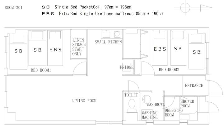 2 camas individuales, 1 futón