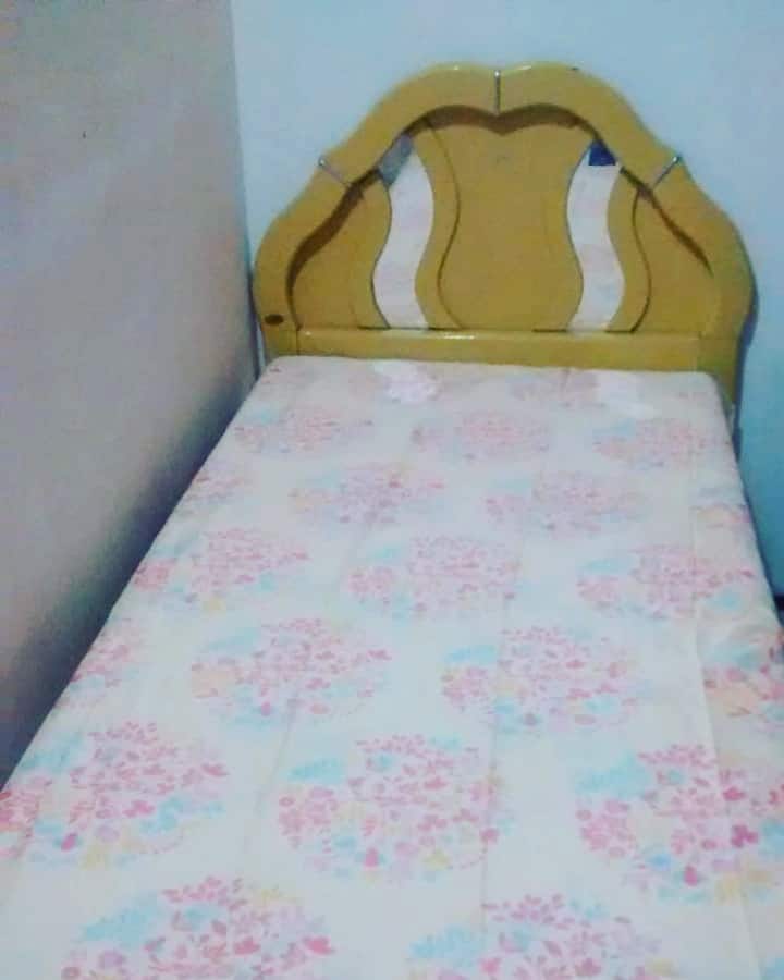 1 cama doble, 1 cama individual, 1 cama, 1 colchón en el suelo, 2 hamacas