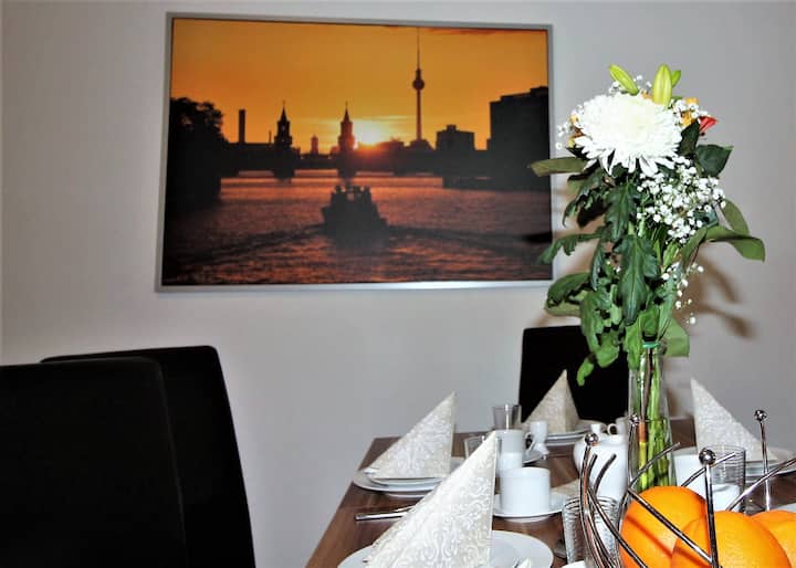 El departamento está ubicado en el centro de Berlín Tempelhof-Schöneberg y está disponible para huéspedes vacacionales de enero a diciembre. El apartamento se divide en una sala de estar con cocina, tres dormitorios separados, dos baños y ofrece una sala de estar de 114 metros cuadrados para un máximo de 14 personas.