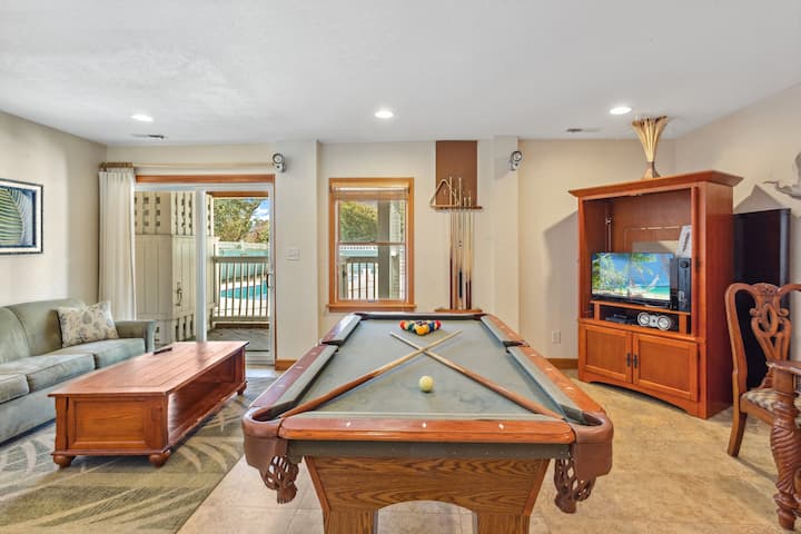 Cuando te acerques a esta hermosa casa, estaciona junto al objetivo de baloncesto, asegurándote de dejar espacio para la diversión y los juegos, antes de pasar por las duchas al aire libre y la parrilla de carbón convenientemente ubicadas para entrar. Deja un poco de vapor después de tu paseo en la sala de juegos con una mesa de billar y la zona de estar y el bar húmedo cercano con un refrigerador de tamaño completo, perfecto para preparar algunos aperitivos y bebidas deliciosos mientras juegas. Ponte al día con tus programas de televisión o películas favoritos en la guarida en el televisor de pantalla plana. Este piso también tiene un dormitorio principal tamaño king con baño privado y 1 litera en la guarida.
