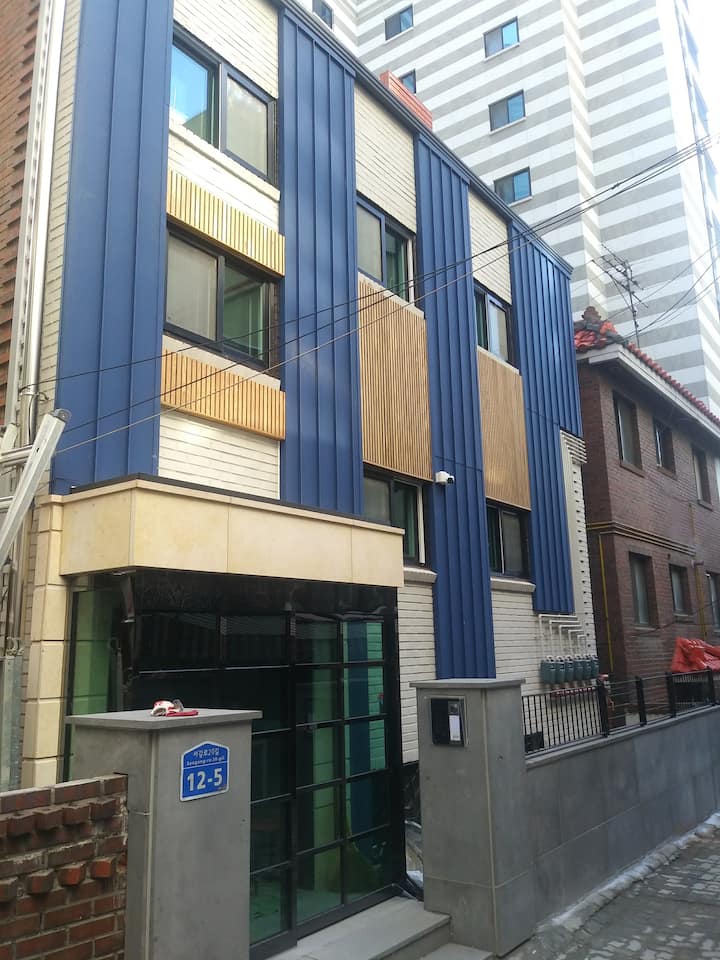 A 10 minutos a pie de la estación de Hongdae en la línea 2, a 1 minuto en metro.