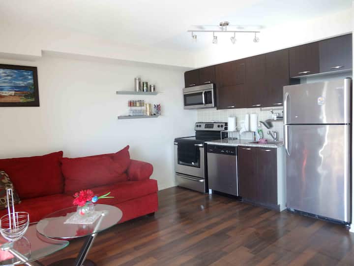 Condominio de 1 dormitorio junto a Liberty Village solo para estancias largas