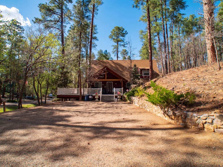 Descubre el mejor refugio en Serenity Creek Cabin, un refugio ideal para familias o reuniones íntimas que buscan tranquilidad. Ubicada en medio del encantador abrazo de Ponderosa Pines y la vida silvestre, esta encantadora residencia cuenta con dos dormitorios, dos baños y una zona de loft adicional para grupos más grandes. Relájate en la serenidad de los alrededores, ya sea rodeado por la chimenea en una noche tranquila o disfrutando de la brisa de verano en la acogedora terraza.