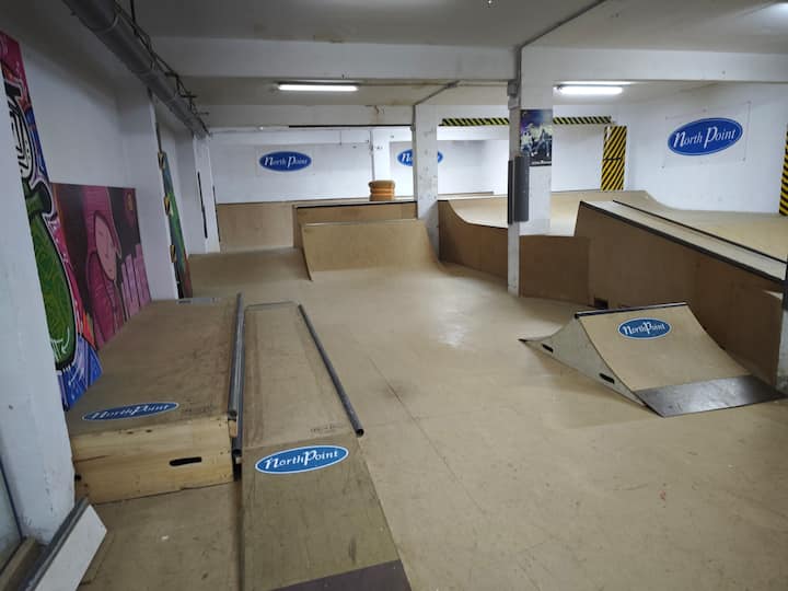 Disponemos de un indoor de 200m2 donde podrás disfrutar con tu skate, scooter, patín freestyle, bmx, etc