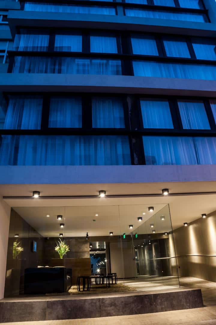 Modernas suites con exclusivo diseño totalmente equipadas y servicio de hotelería. Cálida recepción y relax café bar, para un momento de trabajo o simplemente distenderse en un ambiente agradable. Ubicado a pasos del centro comercial y administrativo de la ciudad.
