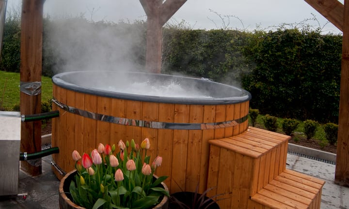 Relájate con una ducha exterior y un jacuzzi.