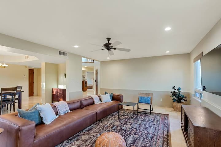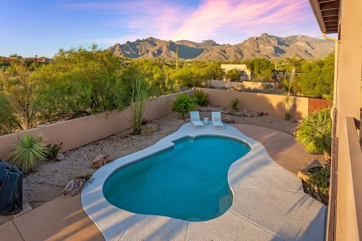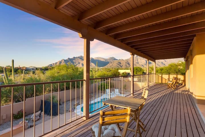 ¡Esta es una de las principales casas de lujo de las estribaciones de Tucson! Esta gran y cómoda casa tiene 3 suites principales, ¡cada una con su propio baño! Hay 3 dormitorios y 2 baños en la planta baja, 2 dormitorios y 2 baños en la planta superior, además de un rincón de oficina. Hulu gratis con TV en directo. La casa se encuentra en un amplio terreno respaldado por el desierto, lo que te da una sensación de privacidad.
