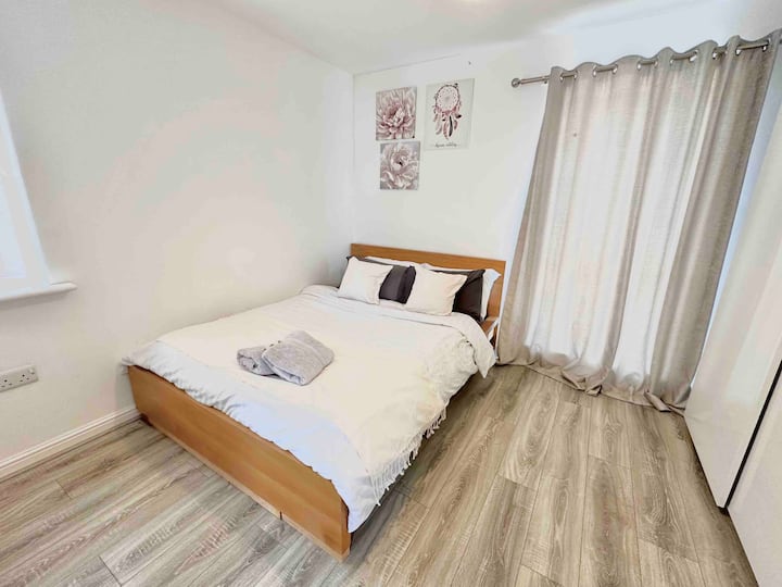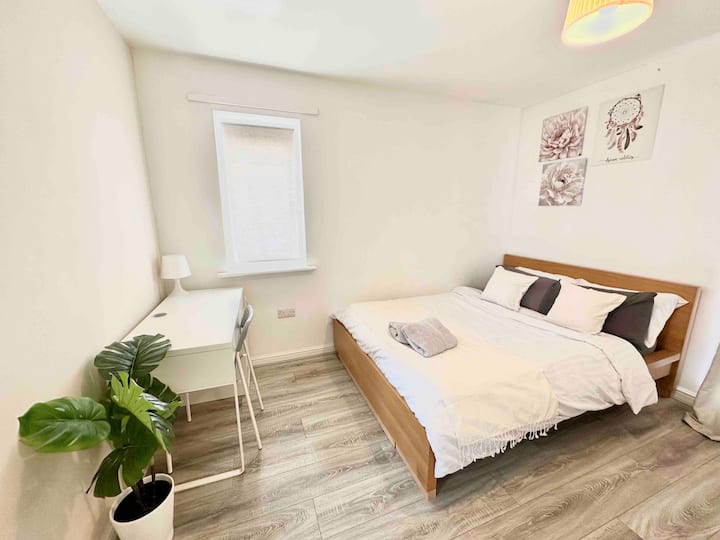 Dormitorio con cama doble cerca del estadio Etihad :)